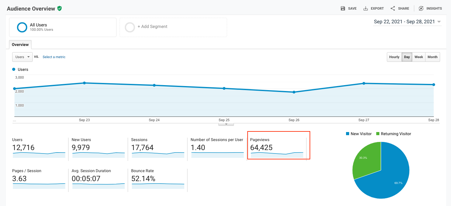 No idea, what your monthly traffic is, go to your Google Analytics. Select Audience > Overview. Make sure you select a one full month (e.g. previous month). And the PageViews is the number you need (see below).
