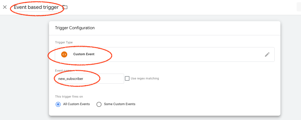 As shown below. We used "new_subscriber" as event name, you can use anything you want.