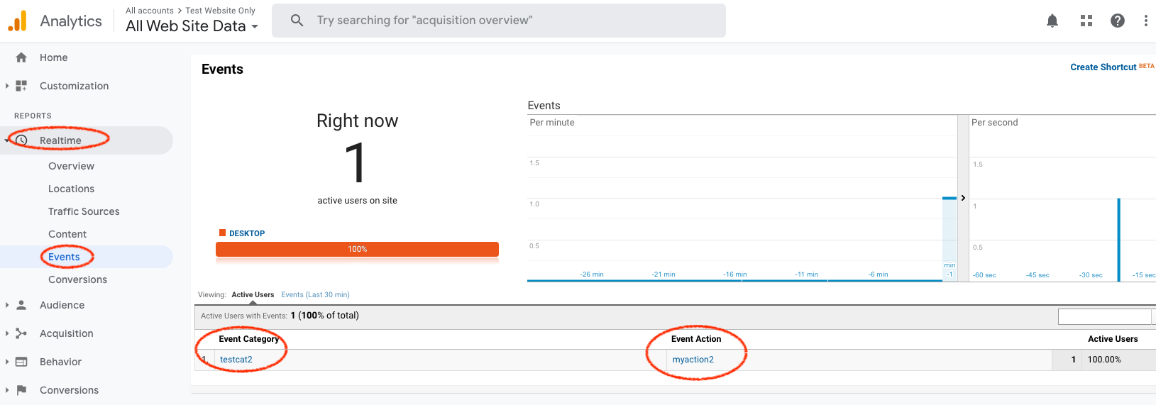 After you implemented, trigger the event on your page and head to GA to see the data in action.