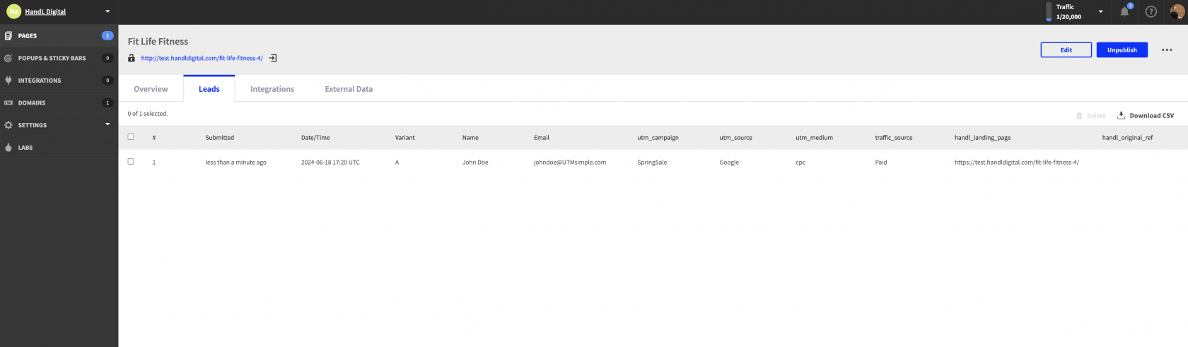After you confirm, you can proceed with testing. All the parameters added will be visible under Submission along with the lead data.